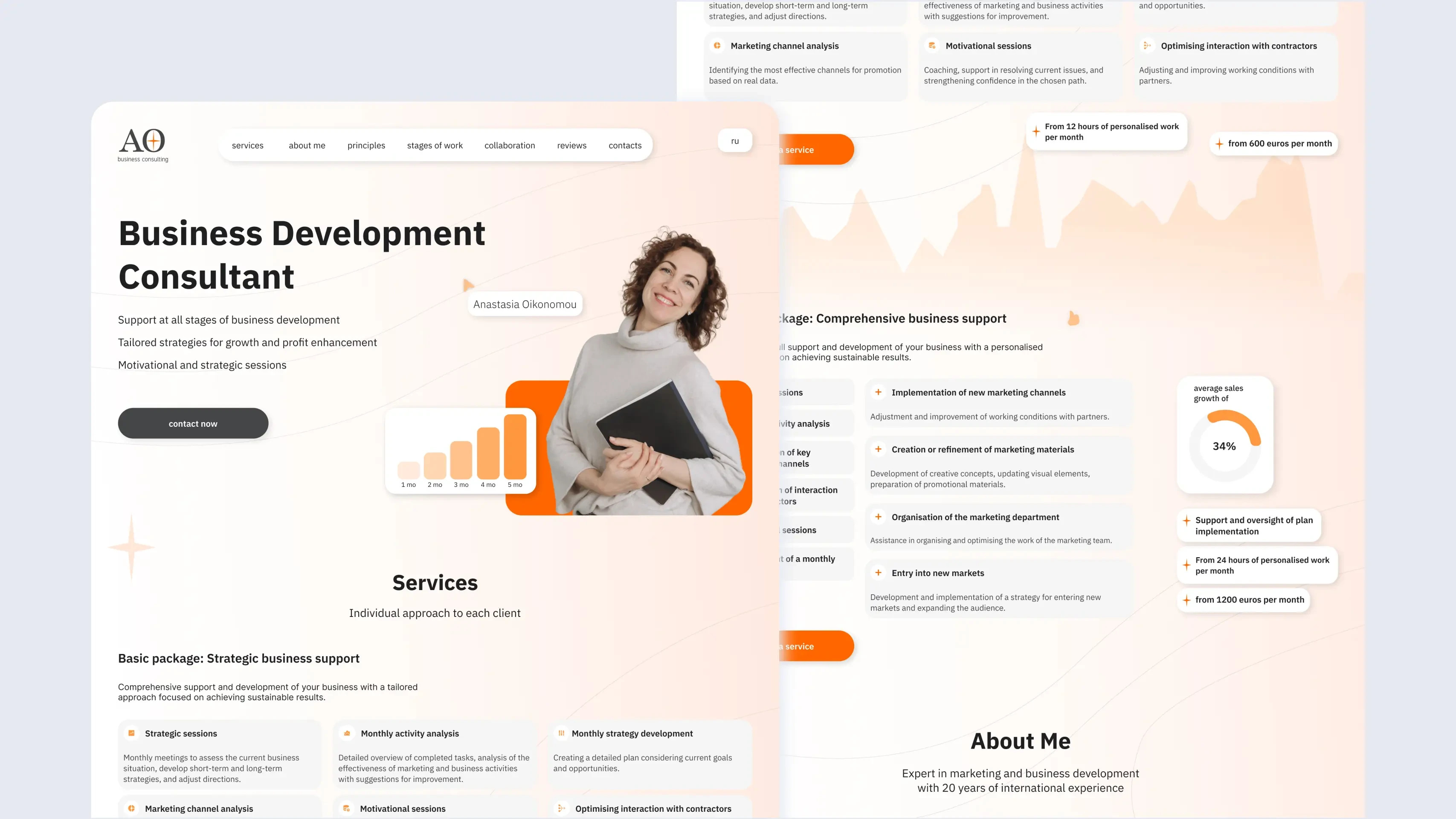 Мы разработали лаконичный, но информативный сайт с акцентом на профессиональный опыт и сильные стороны консультанта.